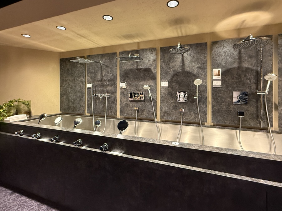 中でも印象的だったのが、通水体験ができるエリア。水栓やシャワーを実際に使いながら、水ハネの様子や使い心地まで確認できるのはとてもありがたいポイントです。図面やカタログだけでは分からない部分を体感できるので、よりリアルな判断につながると感じました。