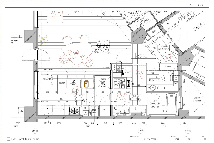 今回はキッチンのお話しです。デザイン提案時のキッチンプランをベースに打合せを進めています。