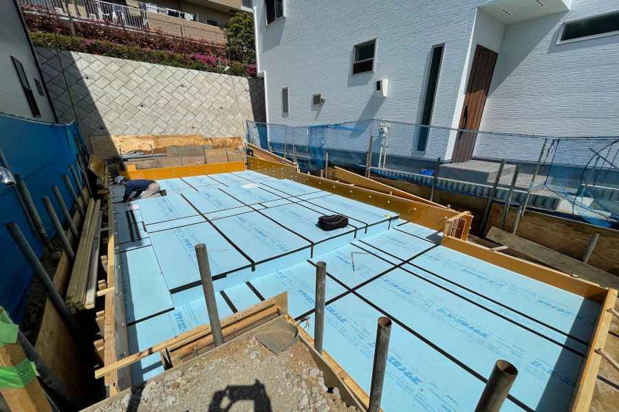 基礎配筋検査前の床下断熱材の確認です。