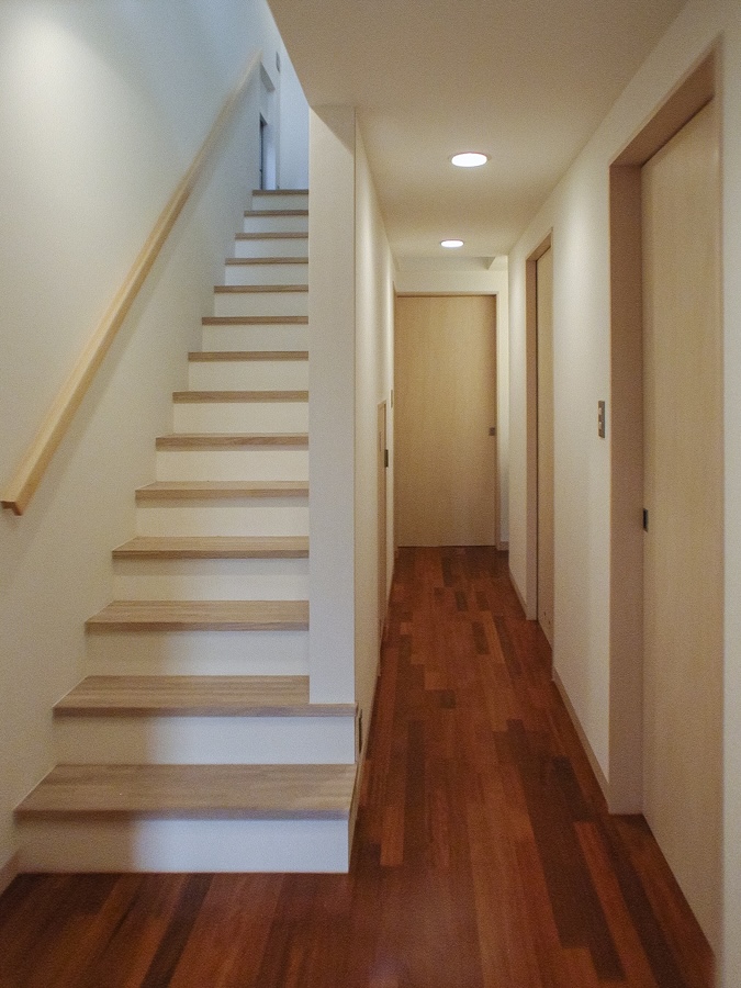 1階玄関ホールから階段、1階廊下をみた写真と、2階LDKの写真になります。