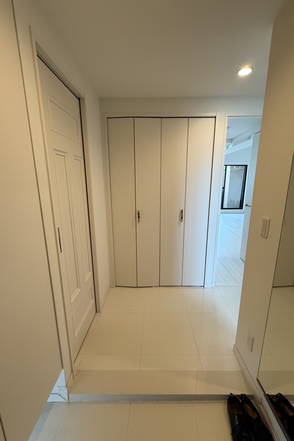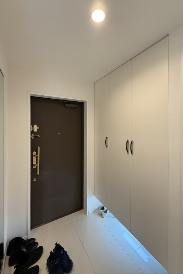まずは玄関ホールから見ていきます。壁面収納があるのですが、ホールとしては手狭な感じです。