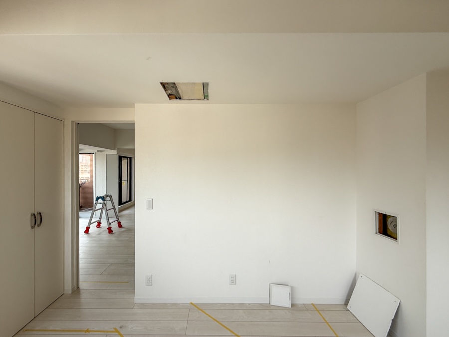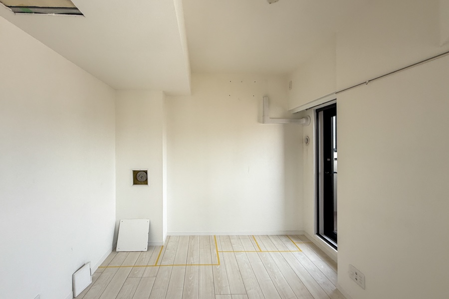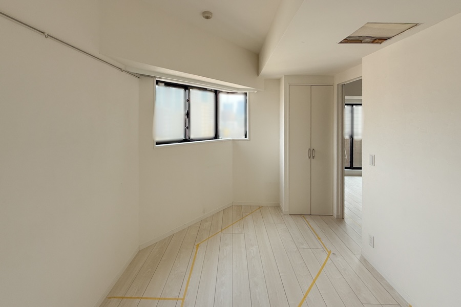 5.8帖ほどの寝室です。現地調査では、寸法の確認だけでなく、配管の位置や天井裏の懐の深さなど、完成後には見えなくなる部分も重点的にチェックしていきました。