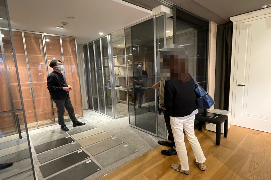 今回のショールームは白金台にあるコンフォート(※現在は大手町に移転)にお邪魔しました。コンフォートはカウンターのワークトップに使う石材やオーダードア、フローリング材など国内外の製品を扱うメーカーです。