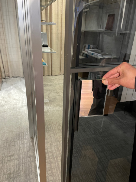 アルミフレームで上吊りのためとても軽いです。ガラスの種類やフレームカラーも豊富で、どのような空間にも合わせることができます。