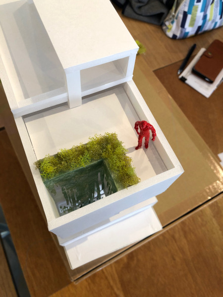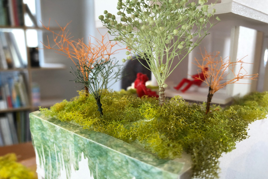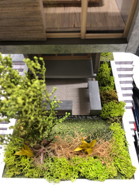 スタジオテラさんの検討・提案模型。植栽も日常と共に時間を掛けて成長するような場づくりを提案していた頂きました。