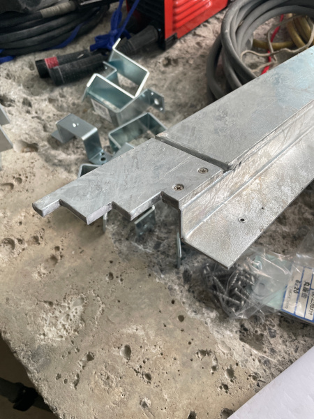 外部の建具に採用するスチールサッシの枠材です。仕上の塗装などせずに溶融亜鉛メッキ仕上げです。一般的には外部使用で耐久性を持たせるために鉄のプレートに溶融亜鉛メッキを施した上で、お化粧に塗装を施しますが、今回はお化粧無しのそのまま溶融亜鉛メッキ仕上げです。 この仕上げはまだホヤホヤなので銀色でキラキラしていますが、数ヶ月でキラキラは落ちてライトグレー色になり、数年でグレーになります。RIFF houseにはピッタリの仕上げです。