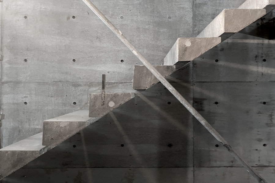 コンクリートの片持ち階段から綺麗に光が漏れていますね。