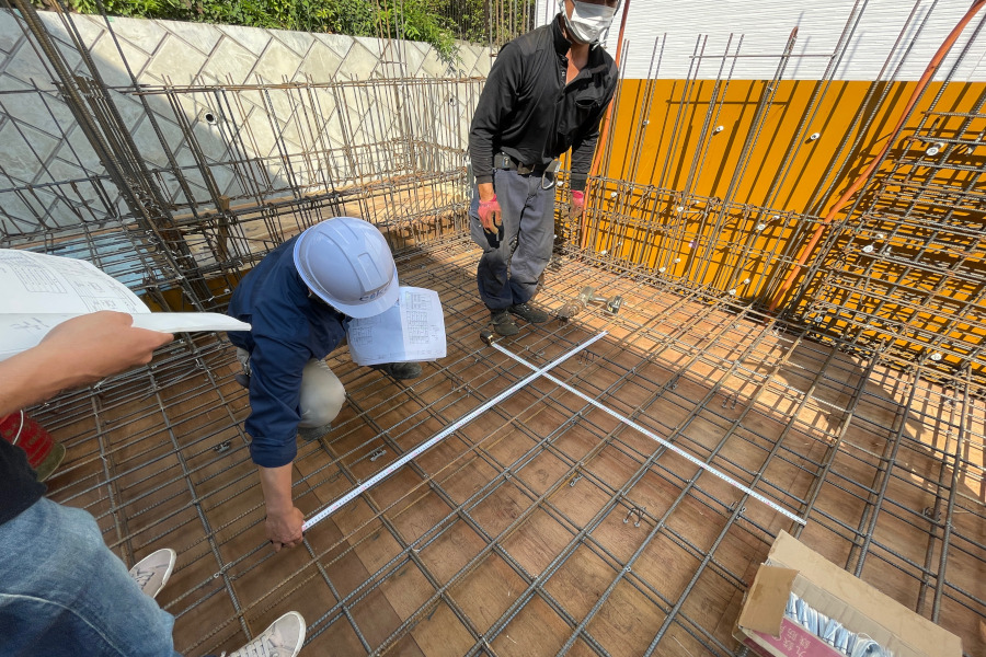 配筋検査の様子。毎回必ず検査をします。