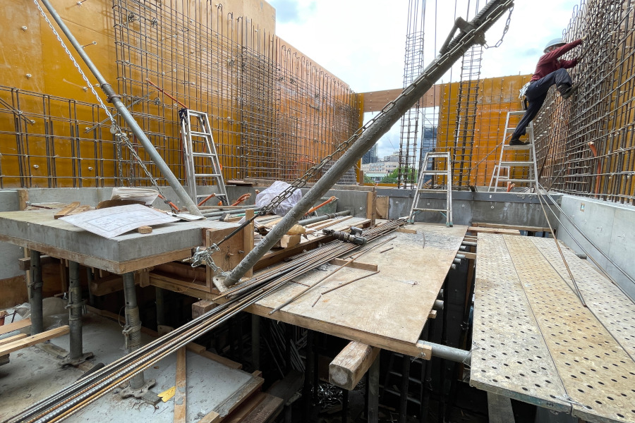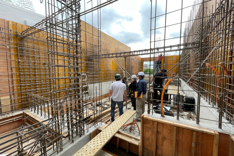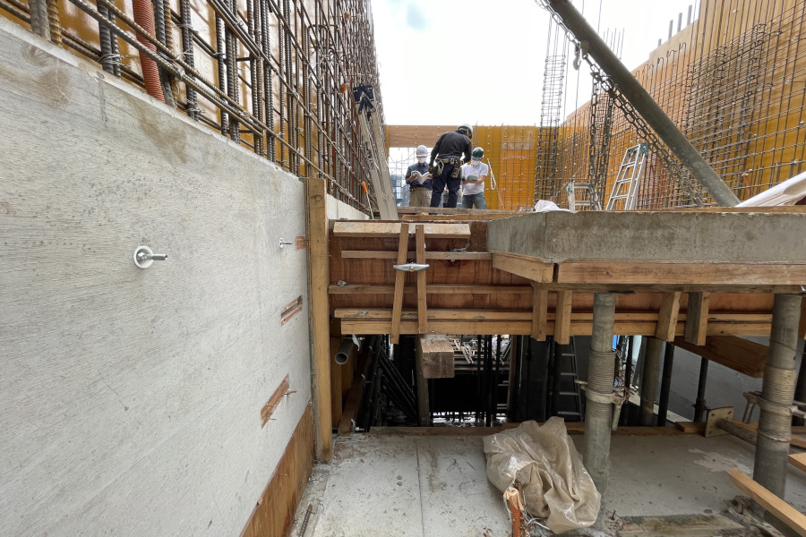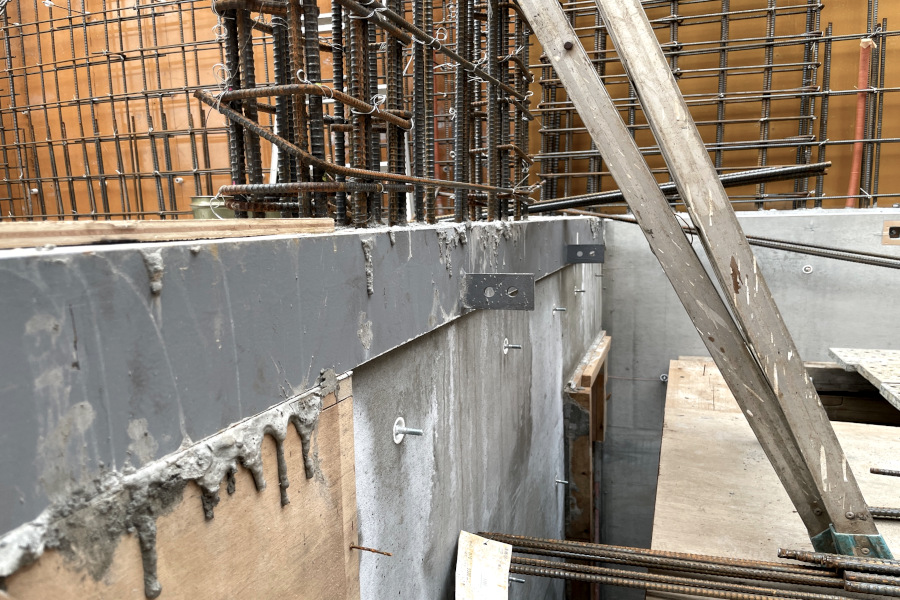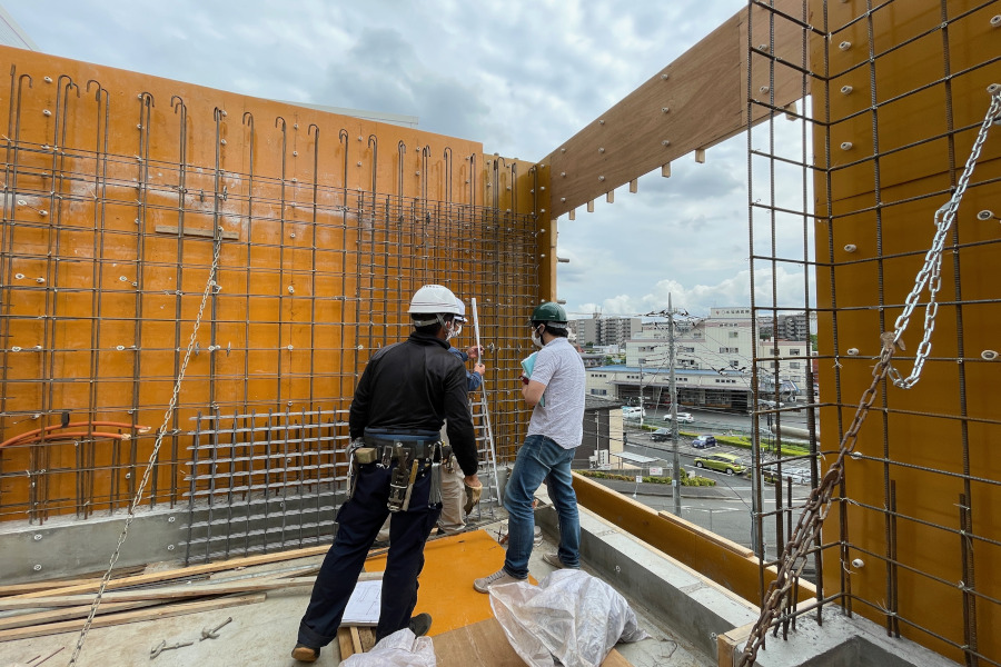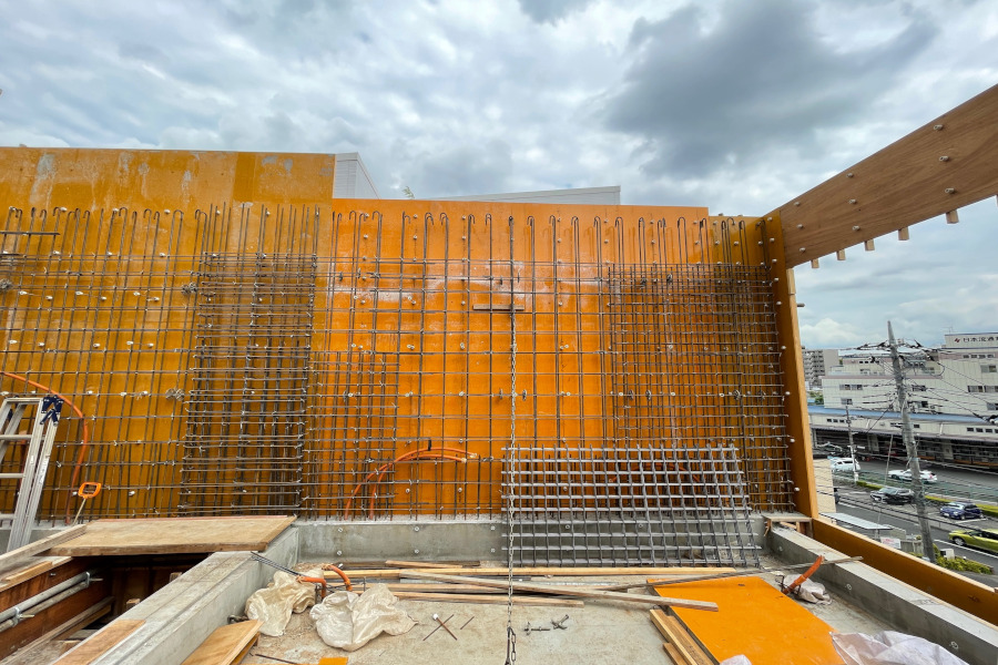 2階の壁もとても綺麗に配筋されております。密に配筋されている箇所は壁一体の変形柱です。