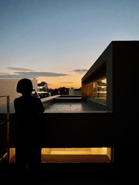 ルーフバルコニーからはとても綺麗な夕焼けが見えました。工事中はなかなかこの時間まで現場にいないので、私たちもじっくり見れてよかったです(笑)