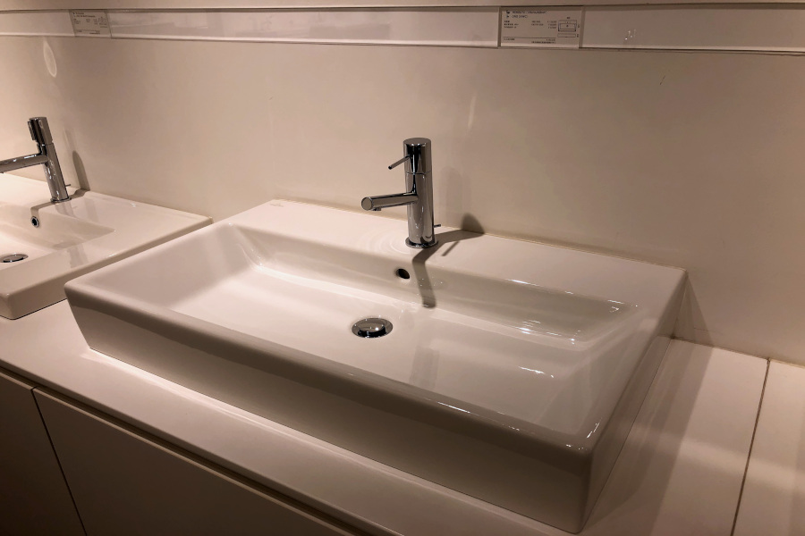 オーバルタイプやスクエアタイプ、またワイドサイズが大きいものと多彩です。水栓金物と合わせながら検討していきます。