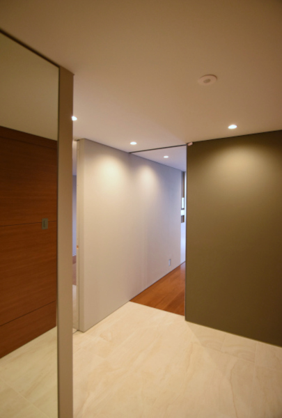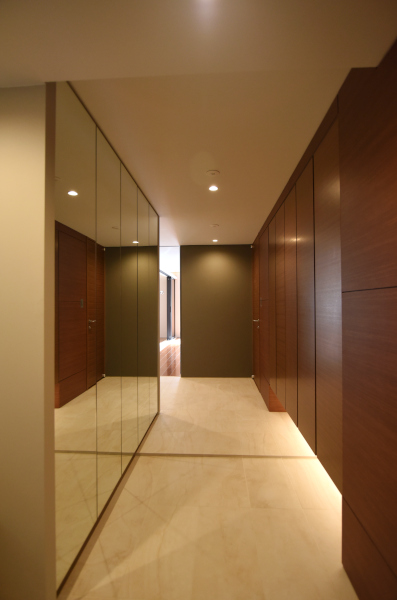 ここは「室」ではなく、どの空間にも属する言わばターミナル的な場所です。廊下の延長、寝室の延長、クロークの延長…