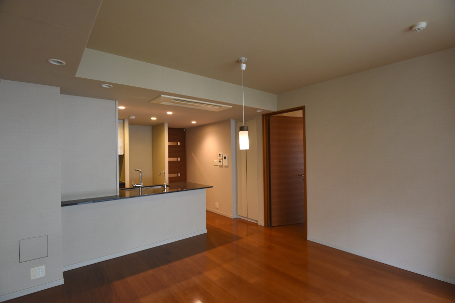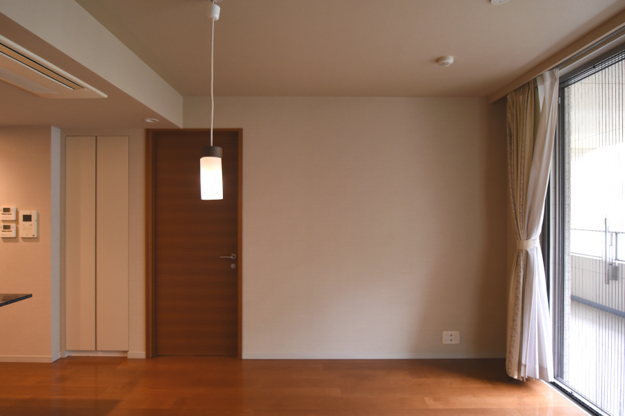 LDKは一般的なマンションのプランです。ただ南側のバルコニーは奥行きが2.3mとかなりゆったりとしているので、LDKから連続性のあるアウトドアリビングとして利用できそうです。