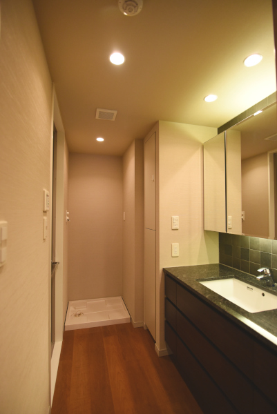洗面廻りは一新したいとのご要望で、この空間を他の空間とどう関係性をもたせるかが今回のリノベーションのポイントとなります。