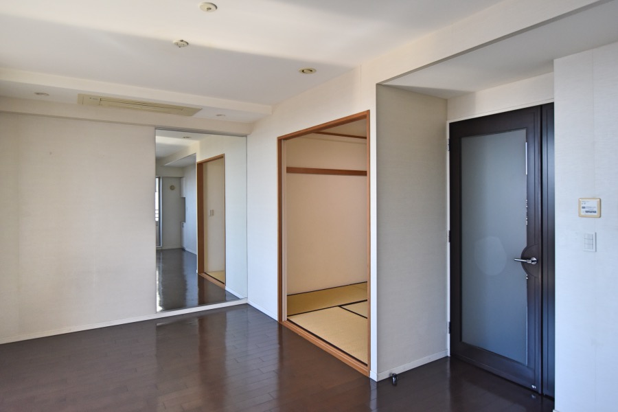 既存は洋室2室、和室1室+LDKの3LDKで、LDKに6畳の和室が接しているプランです。和室がLDKに出っ張ってきていてリビングが少し手狭でした。築18年のマンションですので、やはり設備関係は結構劣化していました。