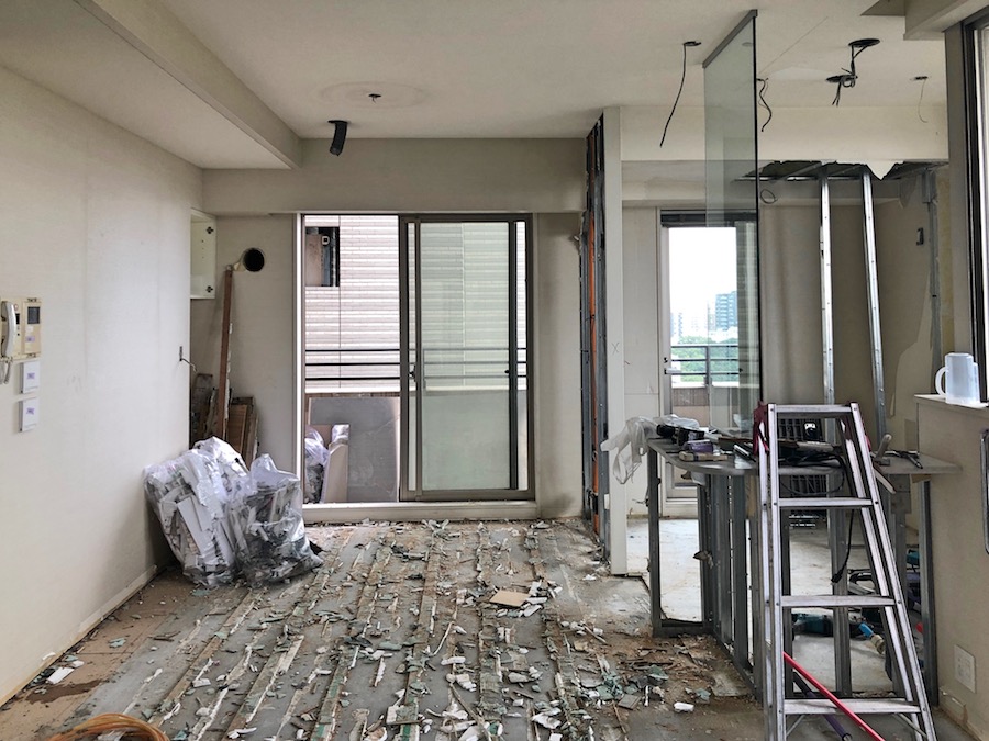 リビング・ダイニング・キッチンの解体状況です。今回の工事では、解体コストをできるだけ抑えるため、リビング・ダイニング・キッチンの天井下地は可能な範囲で再利用をすることで計画しています。