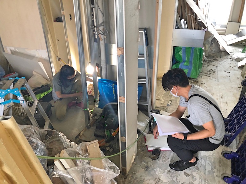 解体工事を進めていたところ、一部想定と違う部分があったとのことで、計画と解体の方針をすり合わせるため現場で確認をしました。