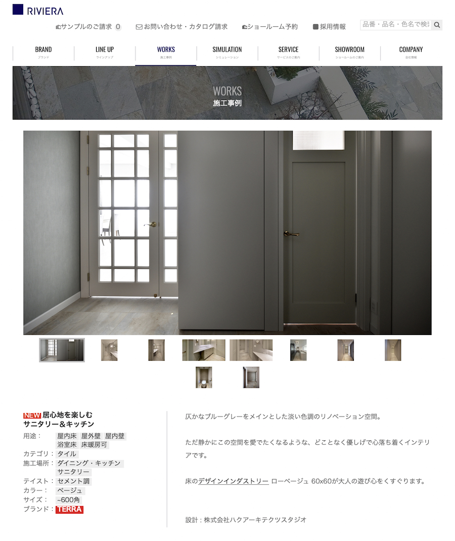 イタリア・スペインのデザインタイルを輸入販売するRIVIERA(リビエラ)の事例紹介ページに、AO house を掲載していただきました。