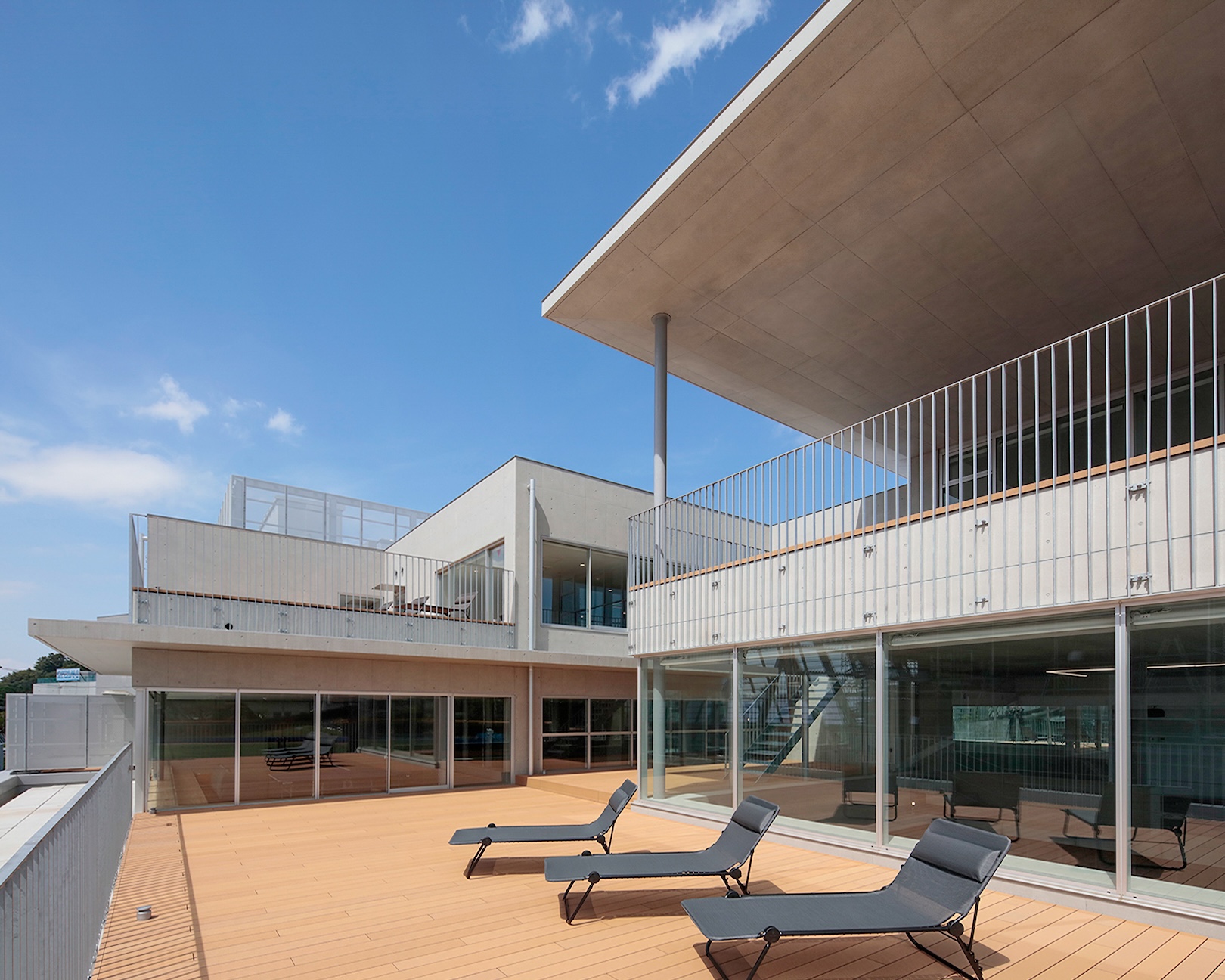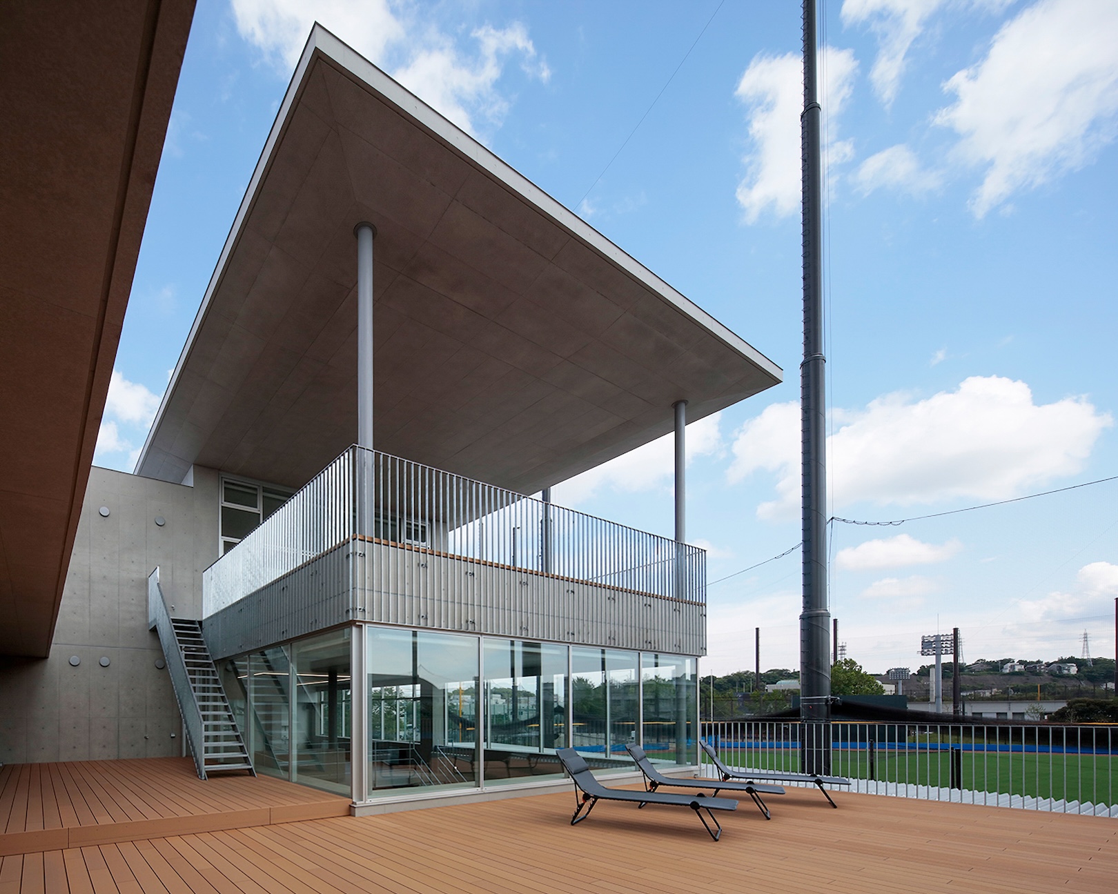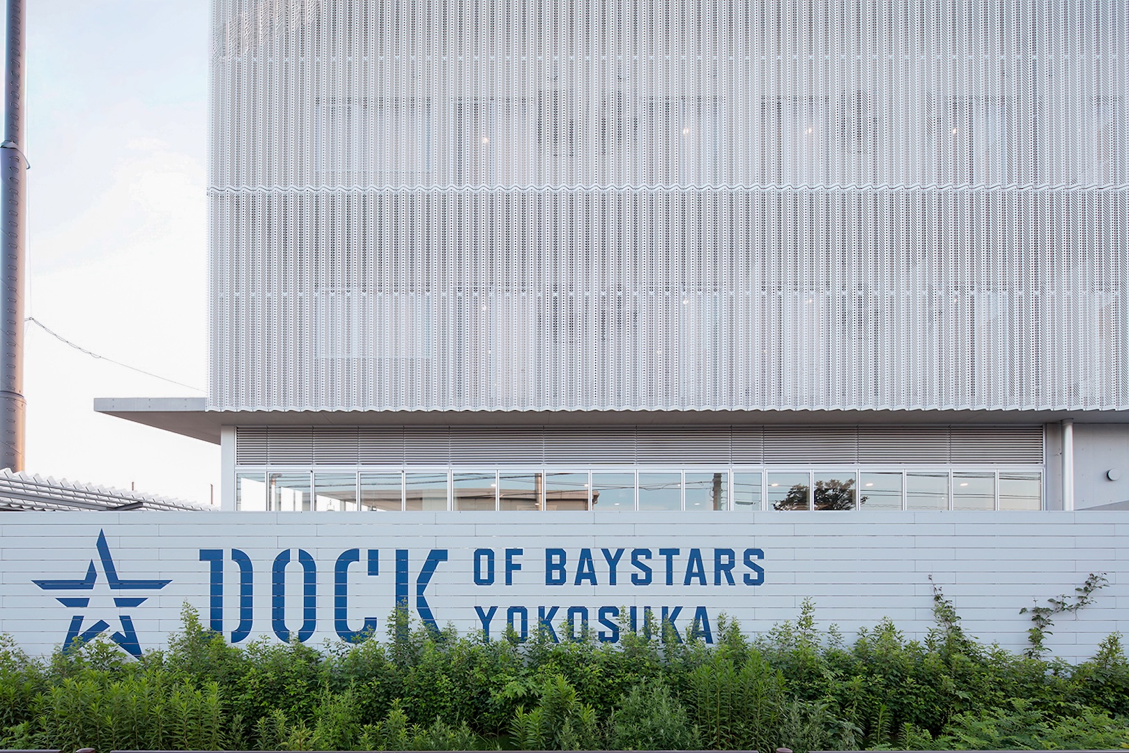 野球をきっかけにコミュニケーションを育む横浜DeNAベイスターズのボールパーク化構想を基軸に、横須賀スタジアムや追浜公園全体を含めたプロ野球の総合練習場「DOCK OF BAYSTARS YOKOSUKA」の一部として計画された選手寮・クラブハウス。